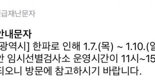 Read More »한파로 임시선별검사소 4일간 단축 운영..오전11시부터 오후3시까지
