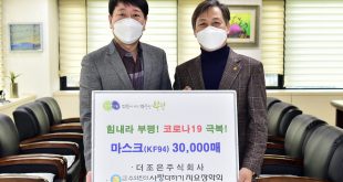 by 정재환 기자 최근 2일 부평구는 (사)수와진의 사랑더하기 지요장학회로부터 코로나19 감염 예방을 위한 KF94 마스크 3만 매를 기탁 받았다. 이번 기탁품은 경기도 소재 마스크 제조업체 더조은(주)이 지요장학회를 통해 구에 전달한 것으로, 더조은(주)은 코로나19 발생 초기인 지난 2월에도 지요장학회를 통해 구에 KF94 마스크 5천 매를 기탁했다. 안상수 지요장학회 이사장은 “코로나19 확산세가 …