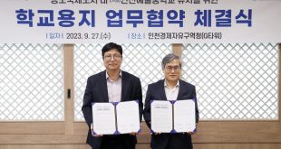 by 이장열 편집인 송도국제도시 8공구 A5블럭 2만㎡ 토지이용계획 변경 통해 학교용지 전환 공급 인천경제자유구역청은 27일 송도국제도시 G타워에서 인천시교육청과 ‘(가칭)인천예술중학교 유치(설립)를 위한 업무협약’을 체결했다고 밝혔다. 협약식에는 김진용 청장과 도성훈 교육감 등이 참석했다. 협약의 주요 내용은 송도 8공구 A5블럭 약 2만㎡ 규모의 부지를 인천시교육청에 (가칭)인천예술중학교 부지로 제공하는 것이다. 인천경제청은 인천 예술중학교가 위치할 …