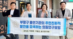 by 김성화 기자 최근 18일 부평구의회(의장 홍순옥) 의원연구단체 ‘부평구 출연기관의 주민친화적 발전을 모색하는 의원연구모임’(대표의원 김숙희)이 지자체 출자·출연기관 우수사례를 연구하기 위해 춘천문화재단 외 2곳을 방문했다. 현장 방문에는 의원연구단체 대표의원인 김숙희 의원과 연구단체 소속인 박영훈·윤구영·구동오 의원이 참여했으며, 춘천문화재단을 방문하여 ▲생활문화 지원사업 ▲문화도시 조성사업 등 재단에서 추진하고 있는 세부 사업과 주민친화적 프로그램 운영과 …