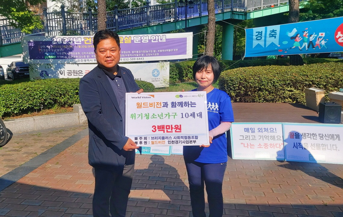 by 정재환 기자 최근 18일 월드비전 인천경기사업본부가 삼산2동에 청소년가구 10명을 위한 생계비 300만 원을 전달했다. 생계비 지원은 이날 브리지플러스 사회적협동조합 주최로 열린 ‘2023년 제2회 생명사랑 이웃사랑 걷기’ 축제에서 월드비전 인천경기사업본부가 300만 원을 후원하면서 이뤄졌다. 생계비 지원금 300만 원은 지역 내 실직이 질병, 사고 등으로 위기상황에 놓인 24세 이하 청소년가정 10곳에 …