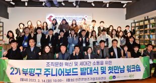 by 정재환 기자 최근 14일 부평구는 청천동 콘텐츠기업 지원센터에서 2기 부평구 주니어보드 발대식을 열고 본격적인 조직문화 소통을 시작했다. 2기 부평구 주니어보드는 1980년 이후 출생자 중 근무경력 7년 이내의 직원 34명이 참여했다. 이들은 3개 팀으로 나눠 8개월간 활동을 이어갈 예정이다. 이날 발대식에서 주니어보드는 임명장 수령 후 선서문을 낭독하며 열린 마음으로 소통하고 …