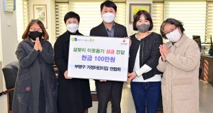 by 김성화 기자 최근 10일 부평구는 부평구 가정어린이집 연합회로부터 설맞이 이웃돕기 성금 100만 원을 전달받았다. 이번 성금은 가정어린이집 연합회 회원들이 지역의 어려운 이웃을 돕고자 마련했다. 양향숙 가정어린이집 연합회장은 “어려운 이웃들에게 조금이나마 따뜻한 마음을 나눌 수 있게 돼 기쁘다”고 말했다.
