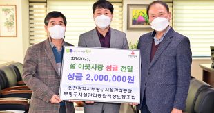 by 정재환 기자 최근 11일 부평구는 부평구시설관리공단과 공단직장노조로부터 설 이웃사랑 성금 200만 원을 전달받았다. 이번 성금은 공단 직원과 공단직장노동조합에서 십시일반 뜻을 모아 마련한 것으로, 부평구 시설관리공단은 지난해에 이어 올해 설 명절에도 지역사회 내 어려운 이웃을 위해 성금을 기탁하게 됐다. 장세강 부평구시설관리공단 이사장은 “코로나19의 장기화로 모두 힘들지만 이번 성금으로 어려운 이웃에게 …