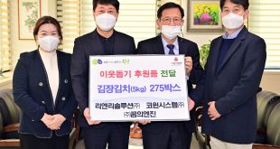 by 정재환 기자 최근 9일 부평구는 리엔리솔루션㈜, 코윈시스템㈜, ㈜꿈의엔진으로부터 김장김치(5kg) 275상자를 전달받았다. 리엔리솔루션㈜은 서울 영등포구에 위치한 사업시설 관리 및 경비 대행업체다. 지난해부터 갈산종합사회복지관에 마스크, 손소독제, 핫팩을 기부하고 소독 후원을 하는 등 꾸준한 나눔을 실천하고 있다. 리엔리솔루션㈜은 이를 계기로 인천 부평구 소재의 코윈시스템㈜와 서울 강남구 소재 ㈜꿈의엔진 등 2개 업체와 함께 …
