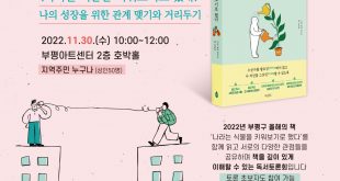 by 김성화 기자 오는 14일부터 부평구립도서관이 ‘통통토론회’ 참가자 50명을 선착순으로 모집한다. 통통토론회는 오는 30일 부평아트센터 호박홀에서 진행하는 2022년 책 읽는 부평의 마지막을 장식하게 될 시민 독서토론회다. 부평구 올해의 대표도서인 ‘나라는 식물을 키워보기로 했다’ (김은주, 허밍버드, 2022)를 한 해 동안 함께 읽고 지역주민들이 자유롭게 토론하며, 서로의 생각을 공유하는 자리다. 1부는 자유토론이다. …