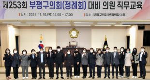 by 정재환 기자 최근 10일 부평구의회는 부평구의회 본회의장에서 ‘제253회 부평구의회(정례회) 대비 의원 직무교육’을 실시했다. 이날 교육은 오는 11월 21일부터 진행하는 제253회 정례회에 앞서 행정사무감사와 예산안 심의 등의 안건을 효과적으로 실시하기 위해 마련했다. 우지영 한국지방정치연구소장이 맡은 이날 강의는 ‘행정사무감사 심사 기법 및 실제 사례와 지방재정과 예산의 이해’를 주제로 회기 맞춤형 교육을 …