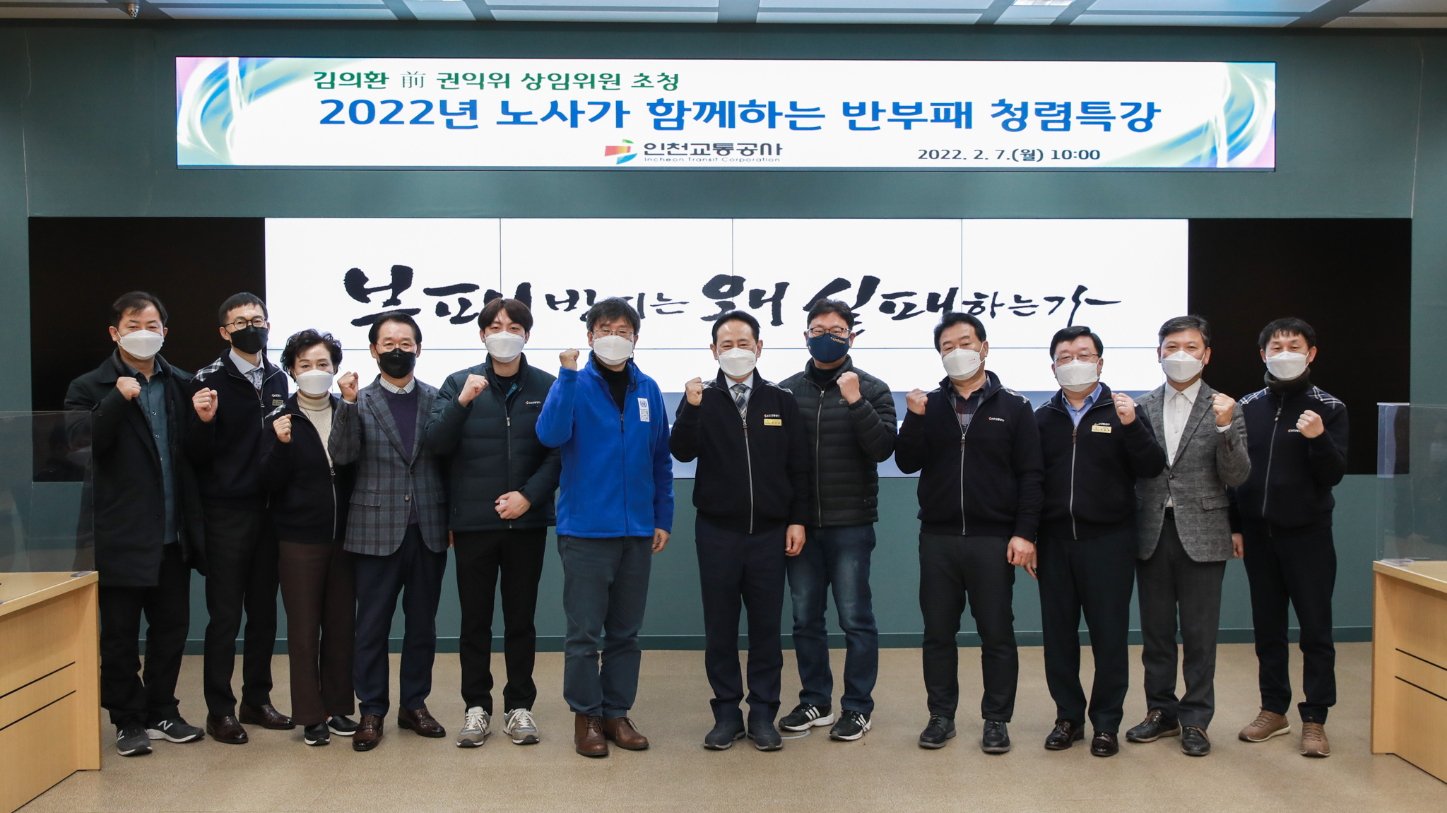by 이장열 편집인 인천교통공사(사장 정희윤)는 7일 본사 3층 스마트재난안전상황실에서 사장, 노동조합위원장, 노동이사, 청년보드 등이 참석하여 ‘노사가 함께하는 반부패 청렴특강’을 진행했다고 밝혔다. 이날 청렴특강은 김의환 전 국민권익위원회 상임위원을 초빙하여 ‘부패방지는 왜 실패하는가’를 주제로 청탁금지법, 이해충돌방지법 등 공직자의 청렴의무 관련 주요 법령의 내용은 물론 반부패 분야 국제적 권위자인 강사의 심도 있는 반부패 …
