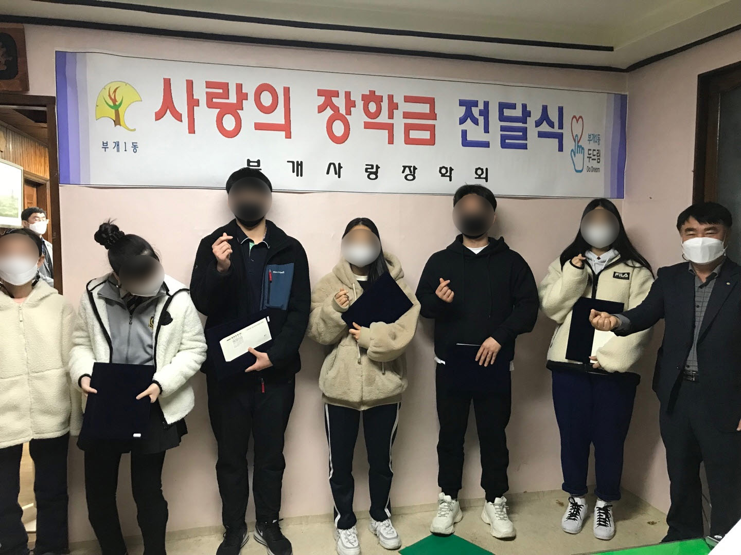 by 정재환 기자 부개1동 부개사랑장학회는 지난 8일 부개1동 태화전력 사무실에서 어려운 형편 속에서도 성실하게 학업에 열중하고 있는 지역 내 저소득 학생 7명에게 장학금 각 30만 원씩 총 210만 원을 전달했다. ‘부개사랑장학회’는 지난 2014년 10월부터 뜻을 함께하는 30여 명의 지역 주민들이 매월 이웃사랑 실천복지기금을 적립해 어려운 이웃을 위해 봉사활동을 전개하고 있다. …