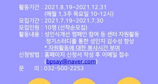 부평구청소년성문화센터, 2021년 하반기 자원활동가 모집
