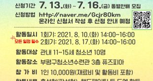 by 김성화 기자 부평구청소년수련관 ‘우리지역의 B.G.M(Bupyeong Green Manager)’이 목재로 아이스팩 수거함을 제작해 지역사회에 전달했다. 지역의 청소년들로 구성된 ‘우리지역의 B.G.M(Bupyeong Green Manager)’은 청소년들이 환경예방교육을 통해 환경의식을 갖추고, 아이스팩 수거함 전달 및 수거된 아이스팩을 지역사회에 전달하는 환경예방 프로그램을 진행하고 있다. 이들은 지난 6월부터 아이스팩 수거함을 직접 만들어 청천1동과 일신동, 부평6동, 십정1동, 산곡2동 …