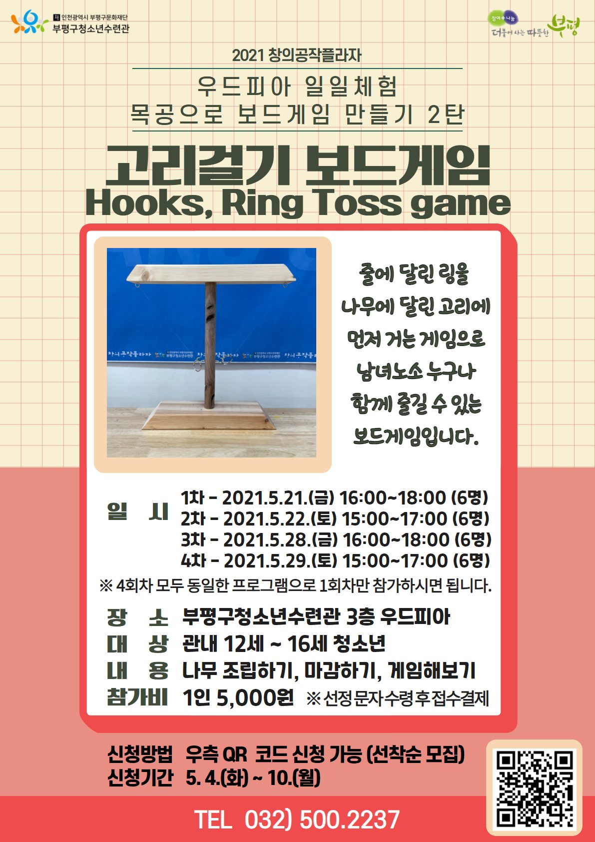 부평구 청소년수련관, ‘목공으로 보드게임 만들기’ 참가자 모집