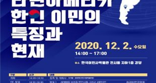 by 이장열 편집인 한국이민사박물관은 12월 2일 박물관 강당에서 “라틴아메리카 한인 이민의 특징과 현재”라는 주제로 학술회의를 개최한다. 이번 학술회의는 코로나로 인하여 2021년으로 연기된 남미 한인 특별전에 앞서 전시에 반영되어야 할 라틴아메리카 이민사의 특징과 현황을 살피기 위해 마련되었다. 회의에서는 라틴아메리카 한인 연구자뿐만 아니라 국내 거주 남미한인들도 초청하여 전시를 통해 국내에 알리고자 하는 …