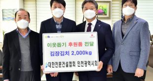 by 김성화 기자 부평구는 30일 대한전문건설협회 인천시회로부터 동절기 저소득 가정을 위한 김장김치 200상자(1상자 당 10kg)를 기탁 받았다. 대한전문건설협회 인천시회는 지난 2015년부터 명절 백미지원과 동절기 연탄지원 등 부평구 저소득 가정을 위해 지속적으로 지원을 이어가고 있다. 지문철 대한전문건설협회 인천시회 회장은 “이번 김장은 어려운 이웃들을 위해 협회 회원사 여러분들이 직접 참여해 담근 만큼 …