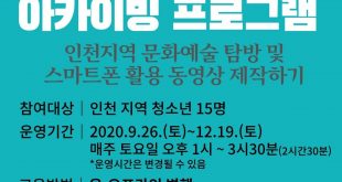 by 이장열 편집인 중앙도서관 청소년문화공간 ‘다누리’에서는 9월 26일부터 12월 19일까지 매주 토요일 청소년을 대상으로 ‘인천 문화예술 바로알기 아카이빙 프로그램’을 운영한다. 1~5차시는 스마트폰을 이용해 영상 제작 방법을 배운다. 6~12차시는 인천문화예술 공연기획단체, 댄스컴퍼니, 인천지역 소극장 등 현장을 방문해 직접 영상을 제작해 본다. 이번 프로그램은 지역사회 단체인 ‘협동조합 빨간오두막’과 협력 운영하며, 청소년들이 직접 …
